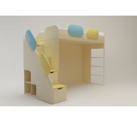 [name] => Кровать второй ярус с лестницей Смайли (Желтый/Зеленый/корпус Клен)