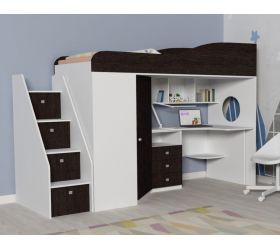 [name] => Кровать-чердак Кадет-1 с универсальной лестницей Белое дерево/Венге