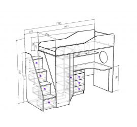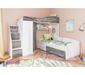 [name] => Кровать-чердак Кадет-2 угловая с универсальной лестницей Винтерберг/Бетон