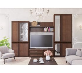 Пенал-витрина (надстраиваемый), как следует из названия, располагается на тумбе для ТВ-техники. Данный модуль выполняет в первую очередь декоративную функцию. На стеклянных полках можно хранить ..