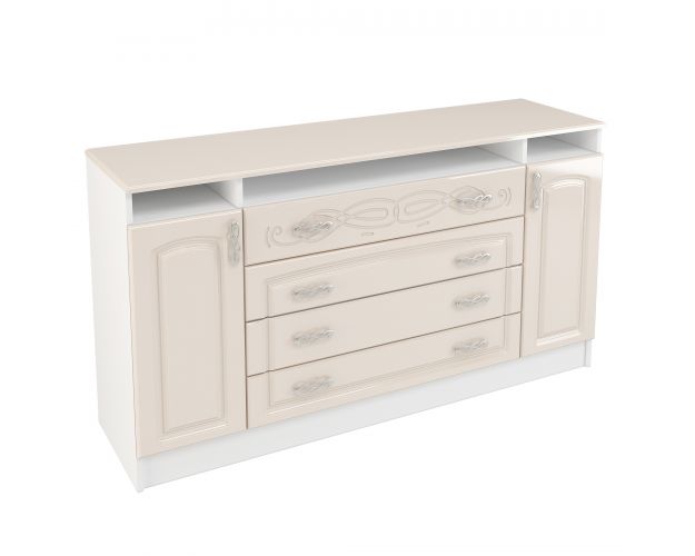 Комод подойдет даже для небольшой спальни, при этом четыре объемных ящика и два отделения за распашными створками вместят белье и другие предметы гардероба